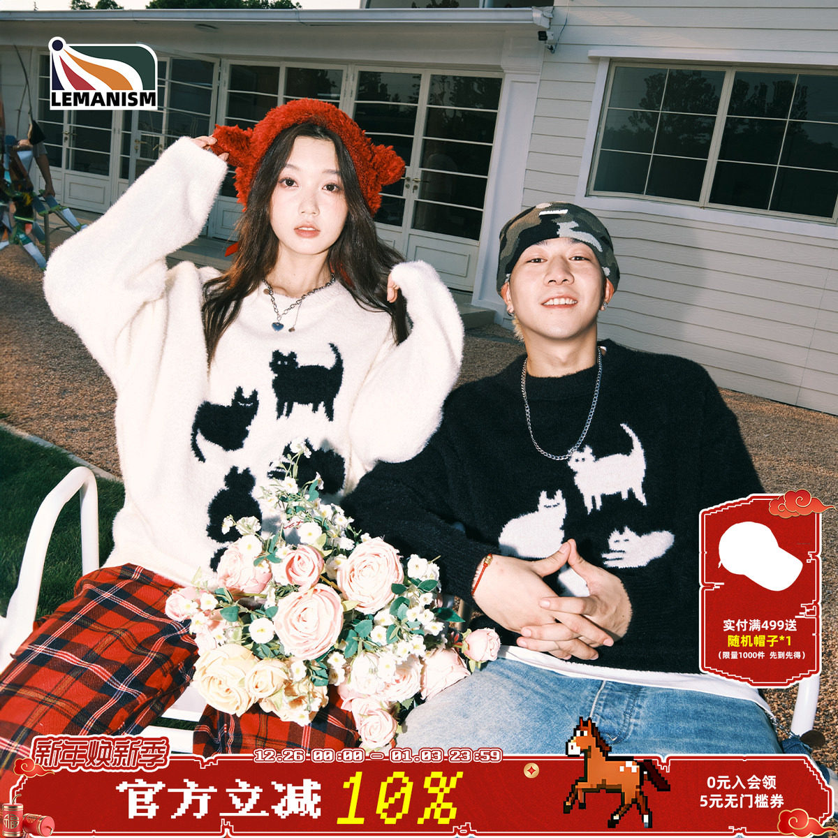 lemanism卡通猫咪马海毛毛衣男女潮牌宽松慵懒针织衫秋冬潮牌线衫