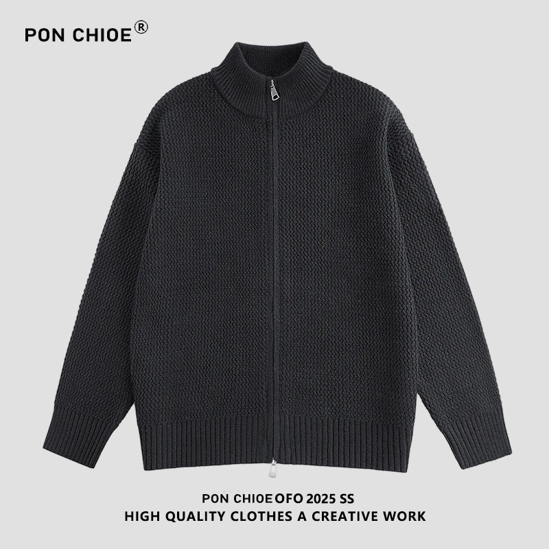 ponchioe立领开衫毛衣男款秋冬季宽松慵懒高级感潮牌针织外套