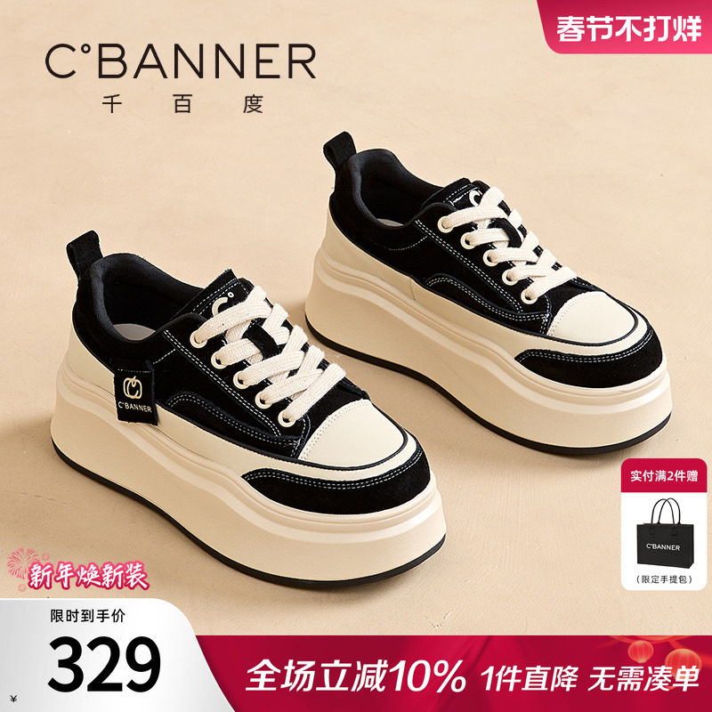 学院风厚底增高板鞋女2026春新款圆头百搭休闲小白鞋饼干鞋单鞋潮
