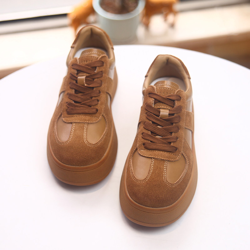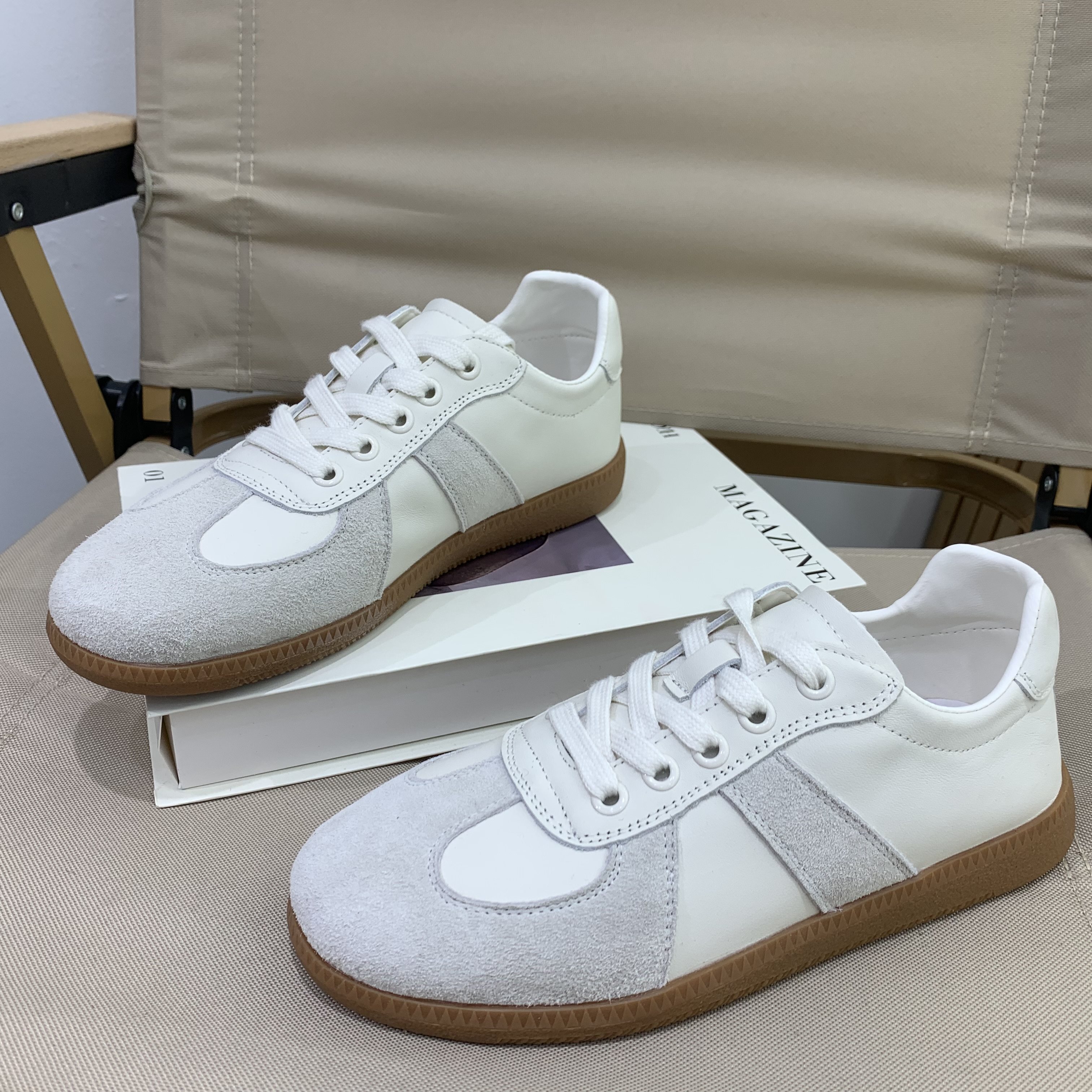 真皮德训鞋女板鞋2025秋季韩版圆头厚底学生运动休闲小白鞋女单鞋