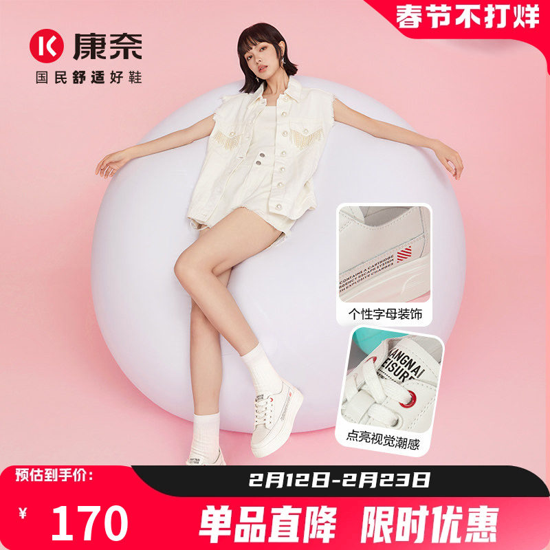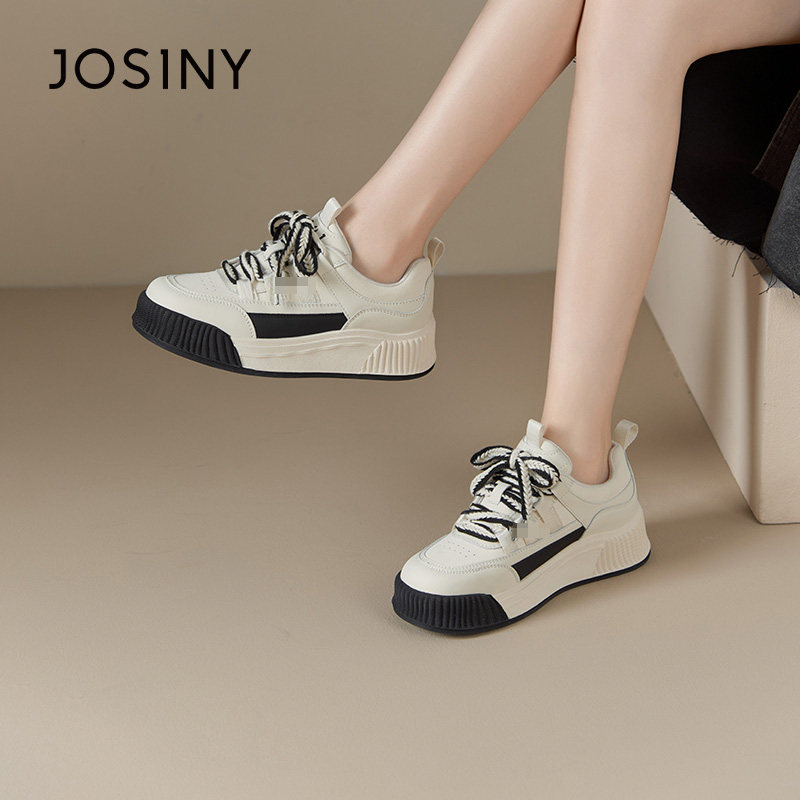 卓诗尼春秋季新款女士单鞋子圆头厚底系带运动休闲小白鞋板鞋日常
