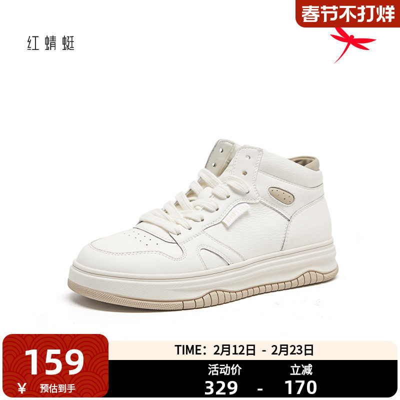 红蜻蜓休闲鞋女秋季时尚圆头系带单鞋百搭外穿高帮鞋子运动板鞋女