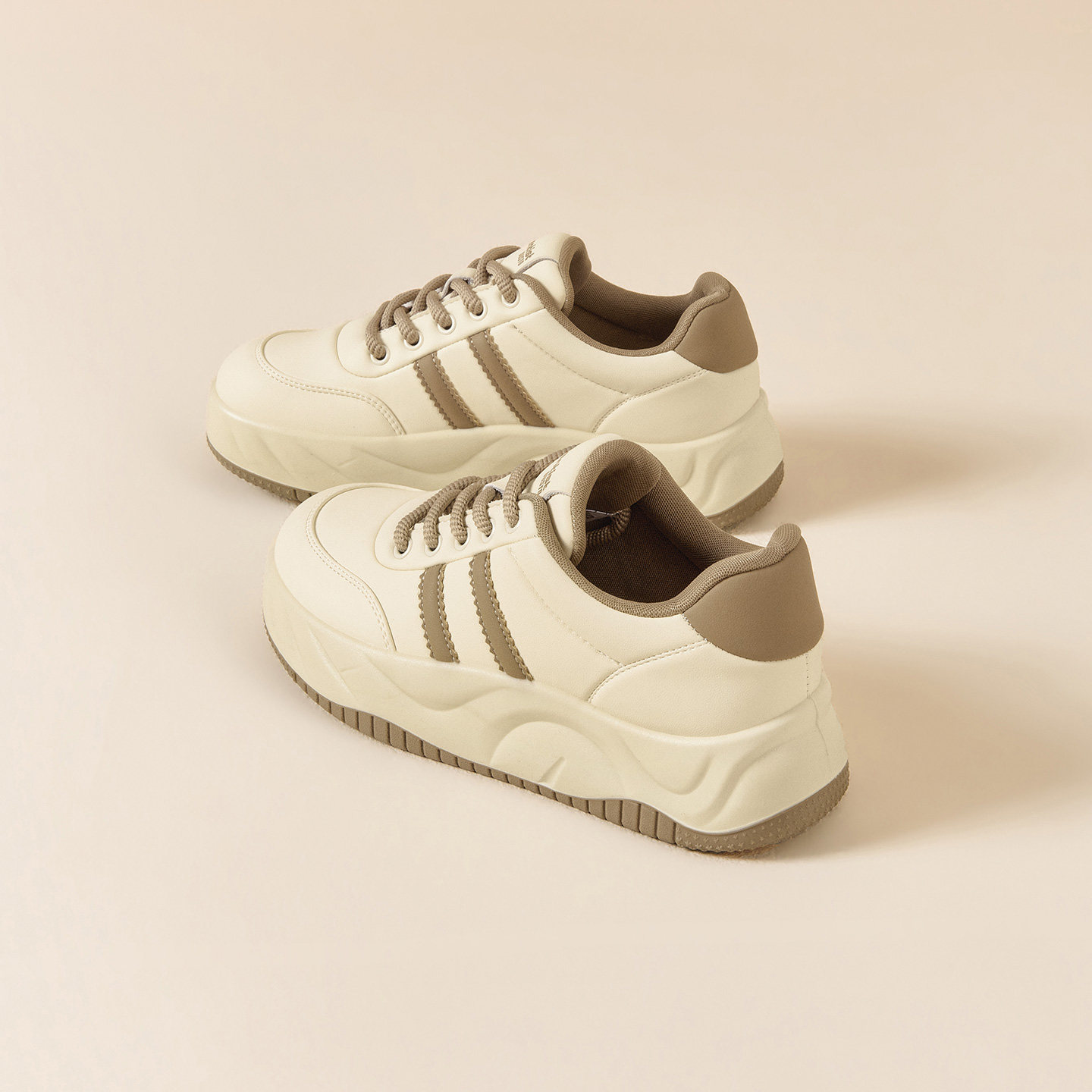 大东女鞋德训鞋2026春季新款时尚厚底休闲板鞋圆头系带百搭女单鞋