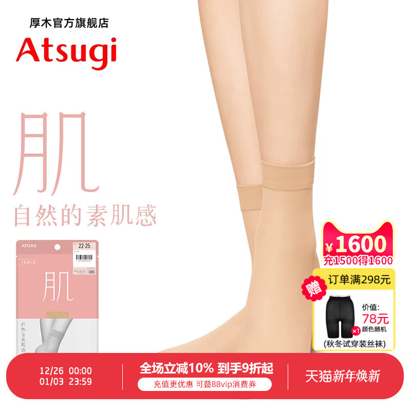 ATSUGI/厚木夏季短筒丝袜舒适肉色质感丝袜短袜女天鹅绒薄款高级