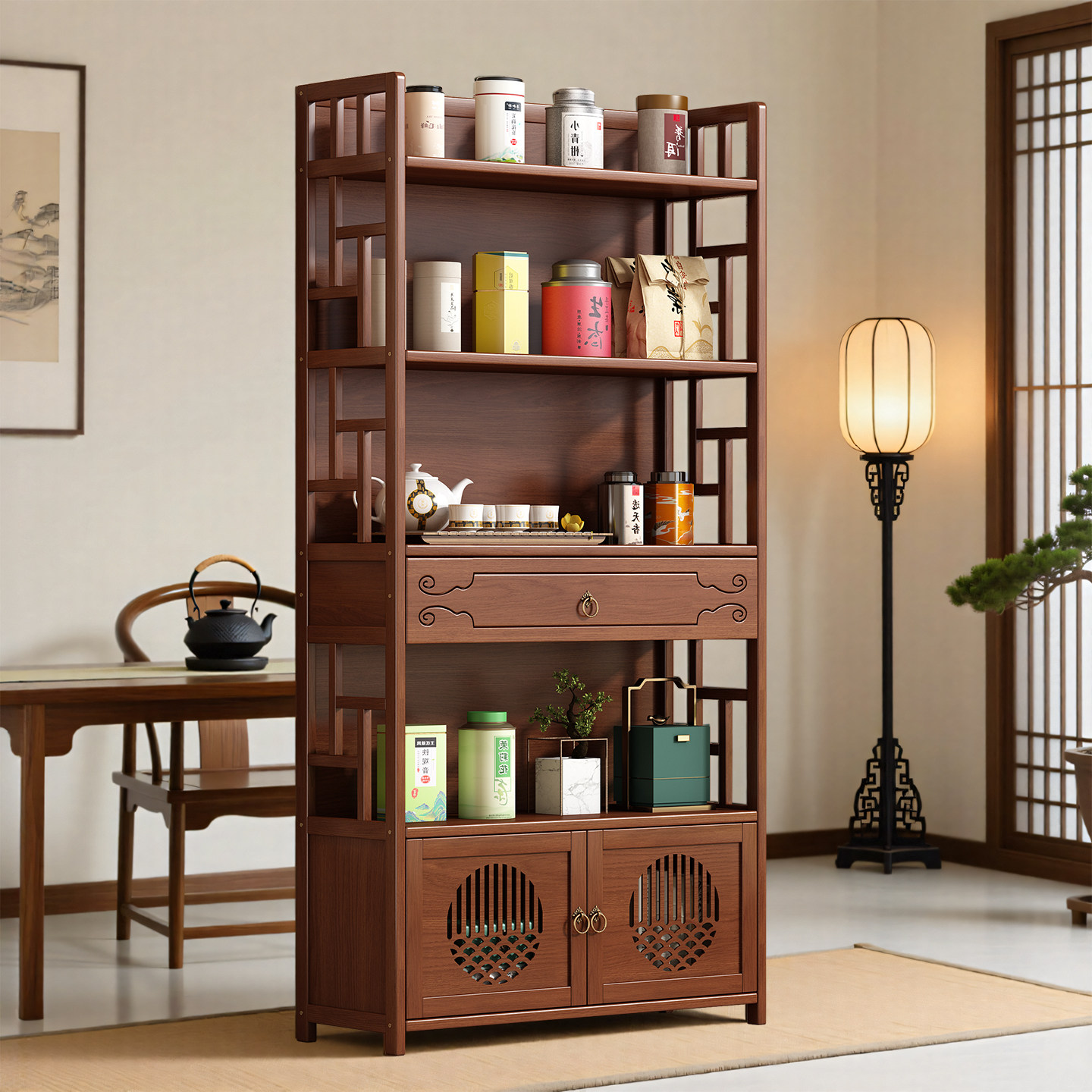 胡桃木中式茶柜茶具置物架实木博古架茶叶展示柜茶架子书柜书架子