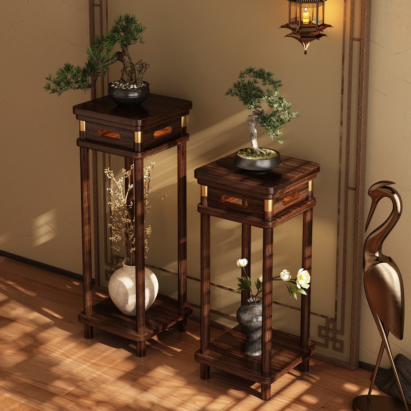 实木博古架花架子客厅落地式中式宋代美学仿古盆景阳台花盆置物架