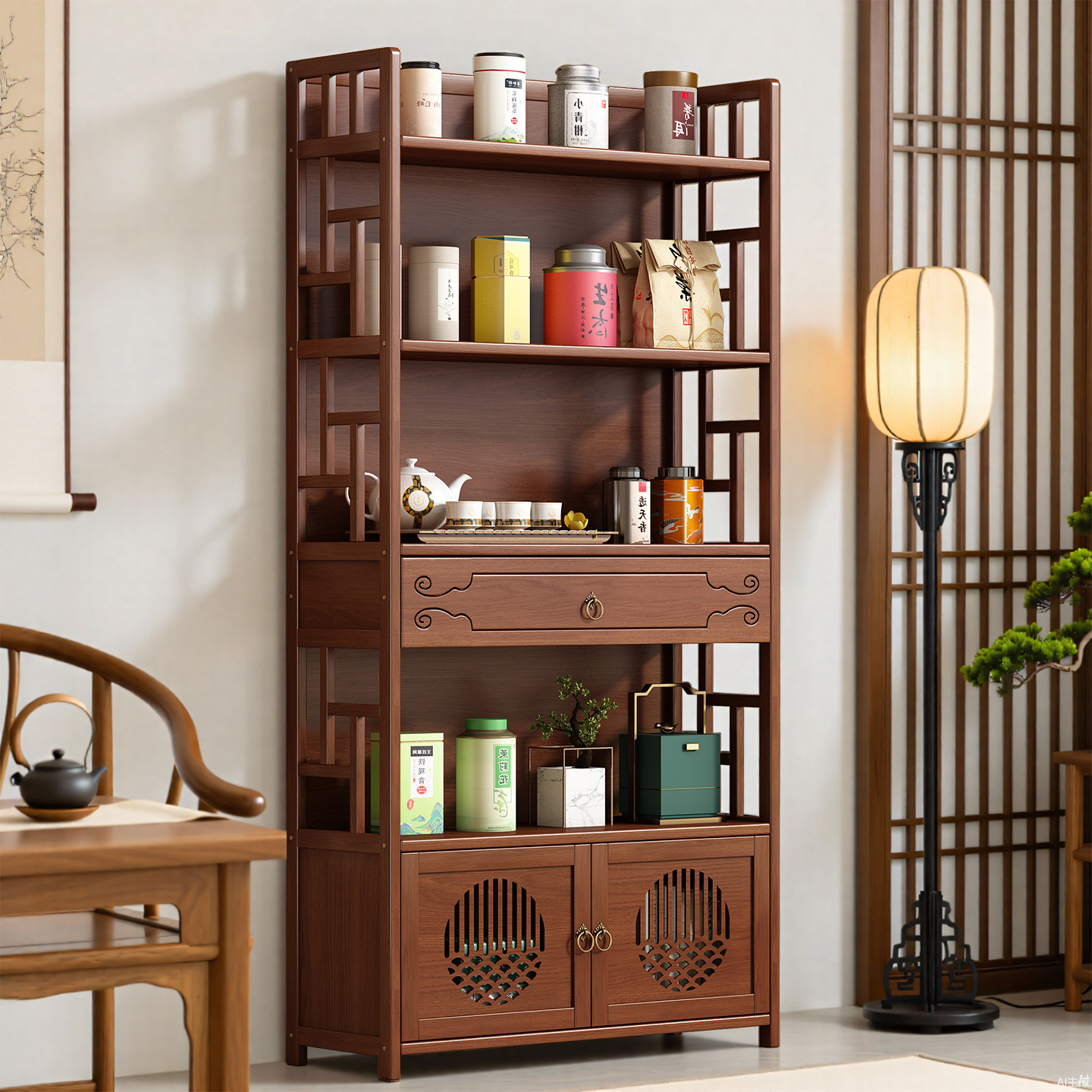 现代新中式实木博古架茶室茶叶置物架家用客厅茶桌展示柜收纳柜子