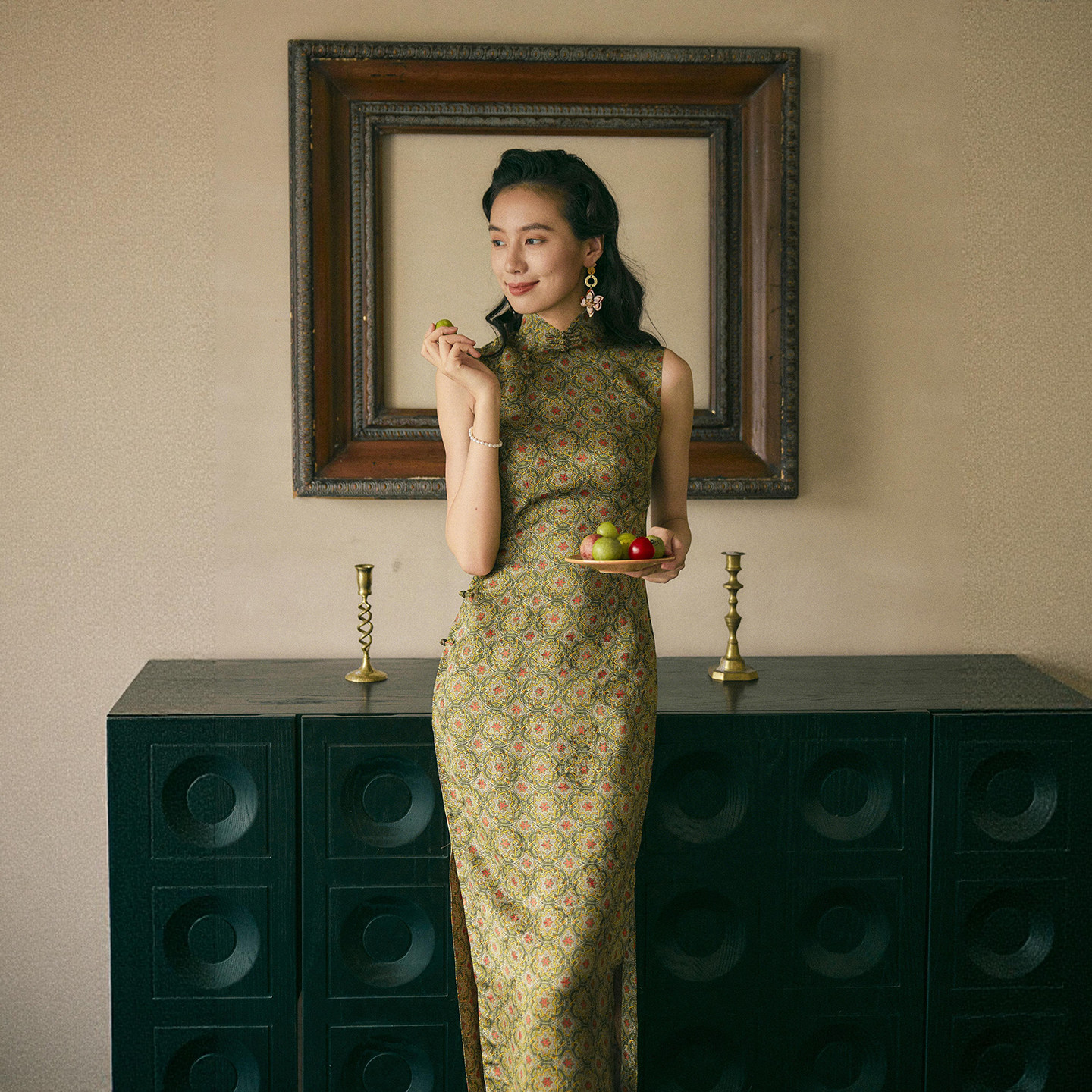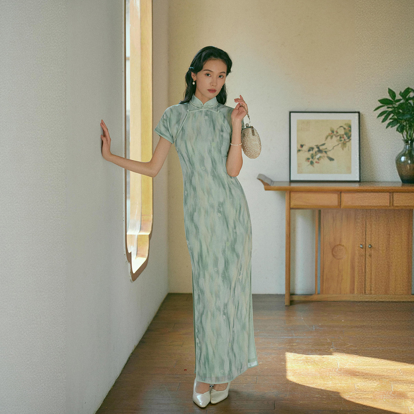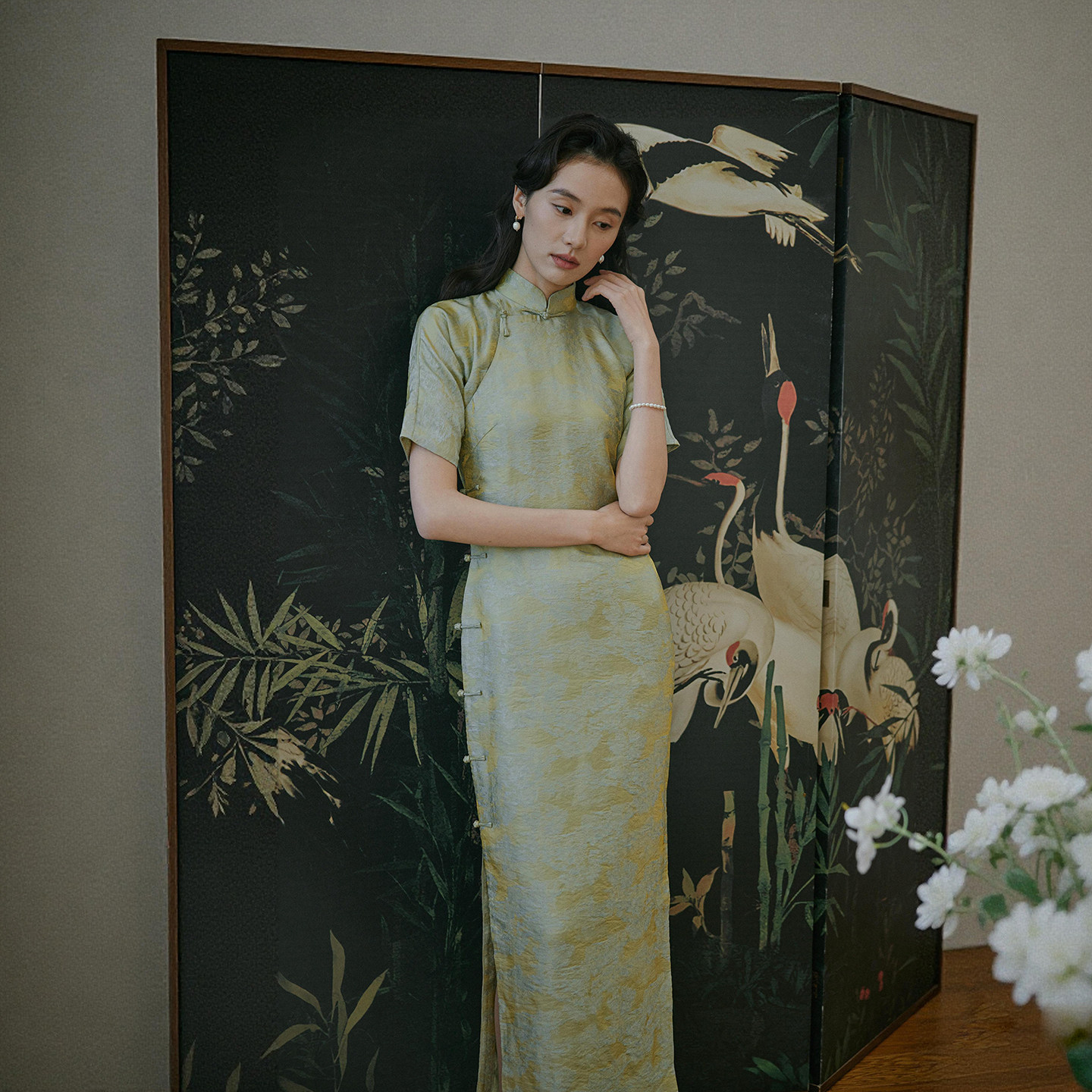 【花样年华】国风旗袍|绿色2026夏春年轻长款高端日常复古连衣裙