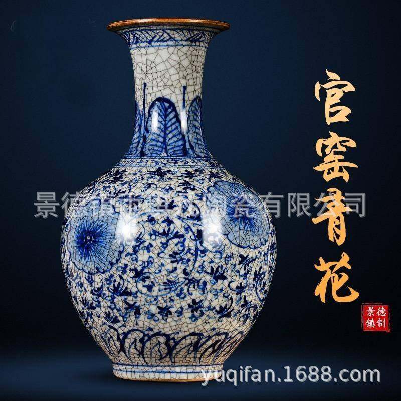 景德镇陶瓷器花瓶仿古官窑中式家居大号青花瓷瓶客厅电视柜装摆件