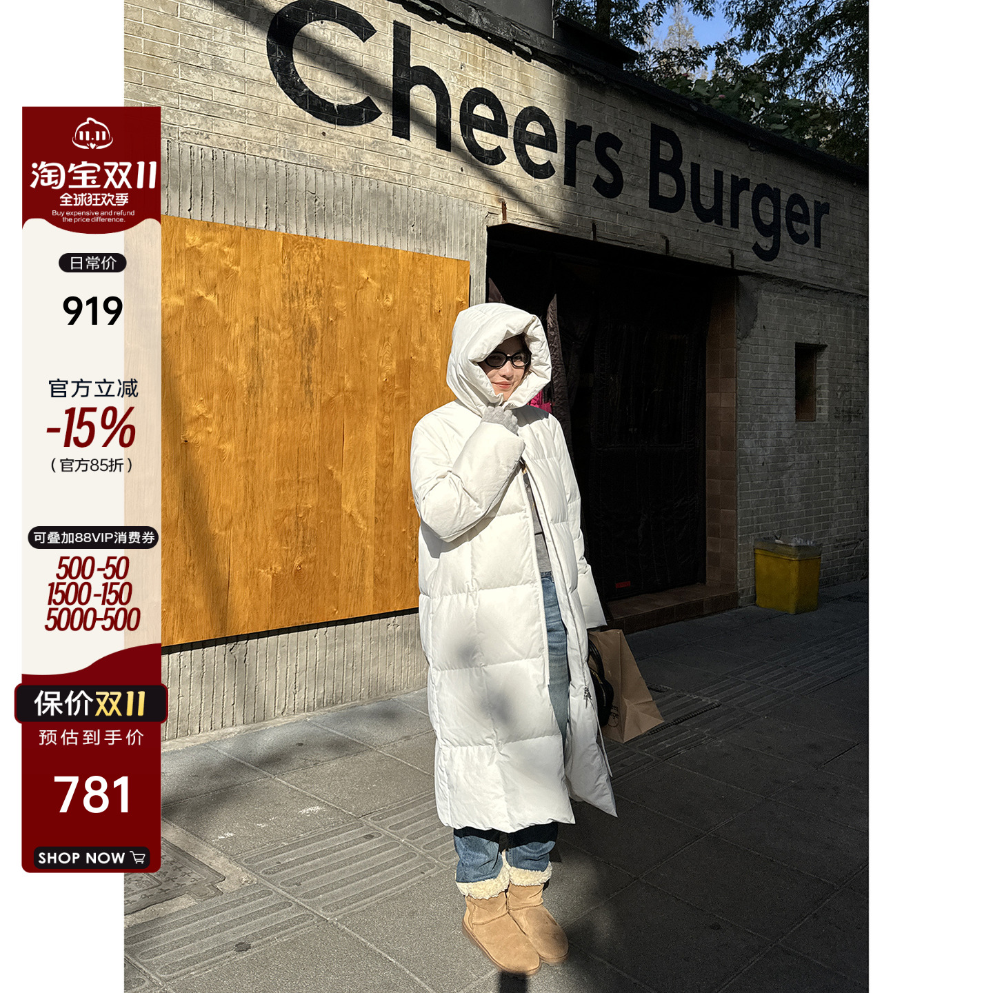 YANGLE_羽绒服女款冬季2025新款韩版廓形中长款连帽保暖鸭绒外套