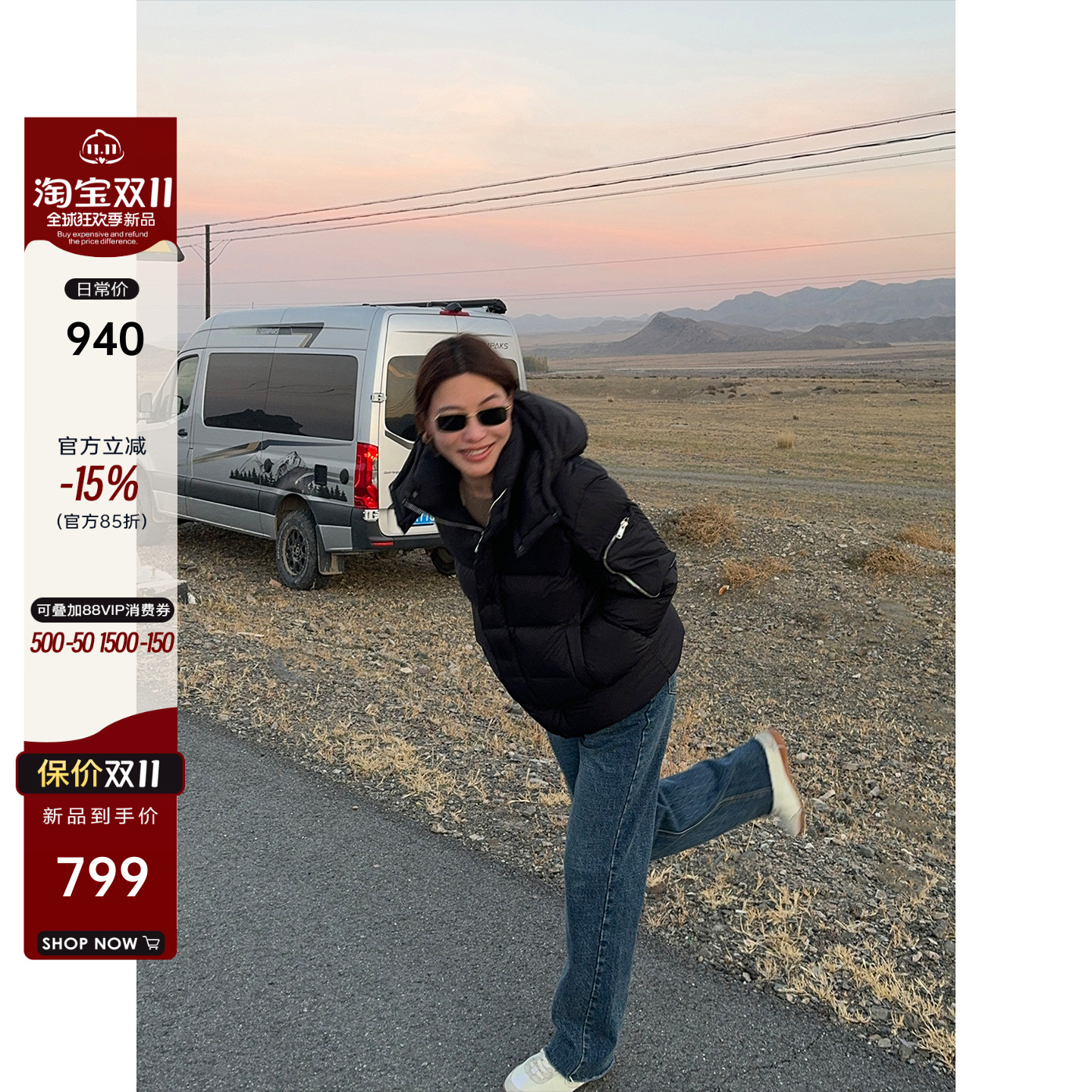 YANGLE_连帽羽绒服女款冬季2025新款韩版黑色保暖防寒鸭绒面包服