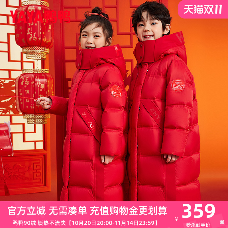 【新年服】鸭鸭儿童羽绒服大红拜年服长款男女童冬季中大童外套WJ