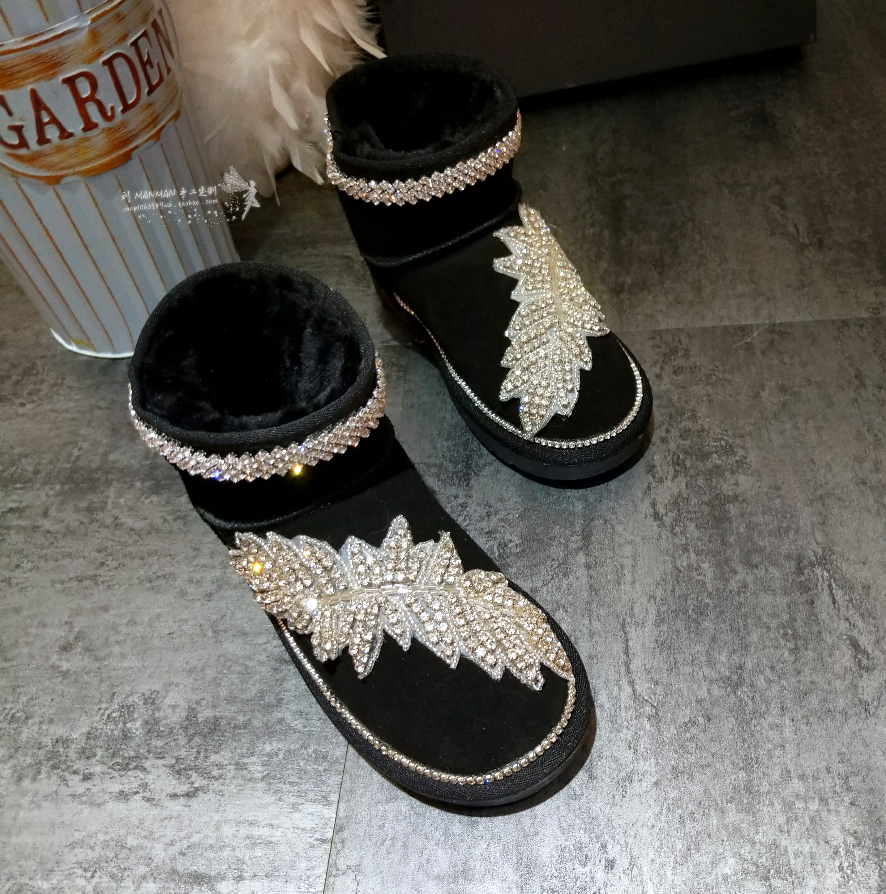 2025冬季冬季韩国 公主叶子钻 亮片 短靴 雪地靴 女款棉靴棉鞋子