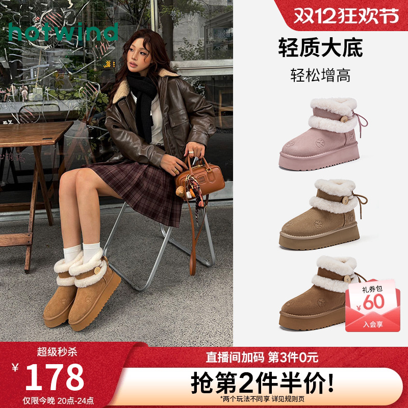 热风厚底雪地靴女鞋2025年冬季新款增高休闲棉鞋百搭毛毛鞋靴子女