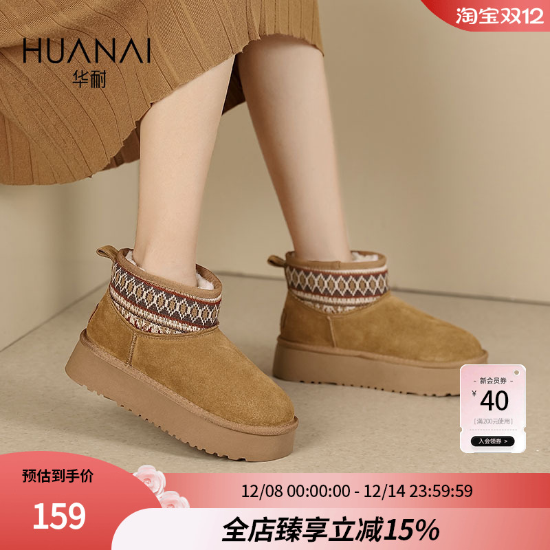华耐雪地靴女款2025新款冬季厚底保暖加绒短靴毛毛棉鞋勃肯面包鞋