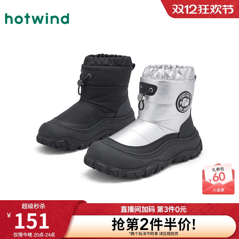 热风户外雪地靴女鞋2025年冬季新款女士时尚休闲靴银黑厚底短筒靴
