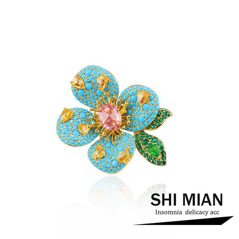 清新蓝松石花朵胸针女轻奢高级感西装大衣外套百搭胸花别针配饰礼
