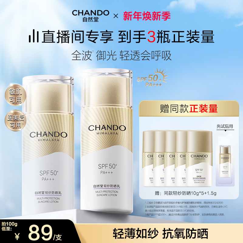 【店播专属】自然堂轻纱多维光护隔离防晒乳抗氧轻透防晒霜敏感肌