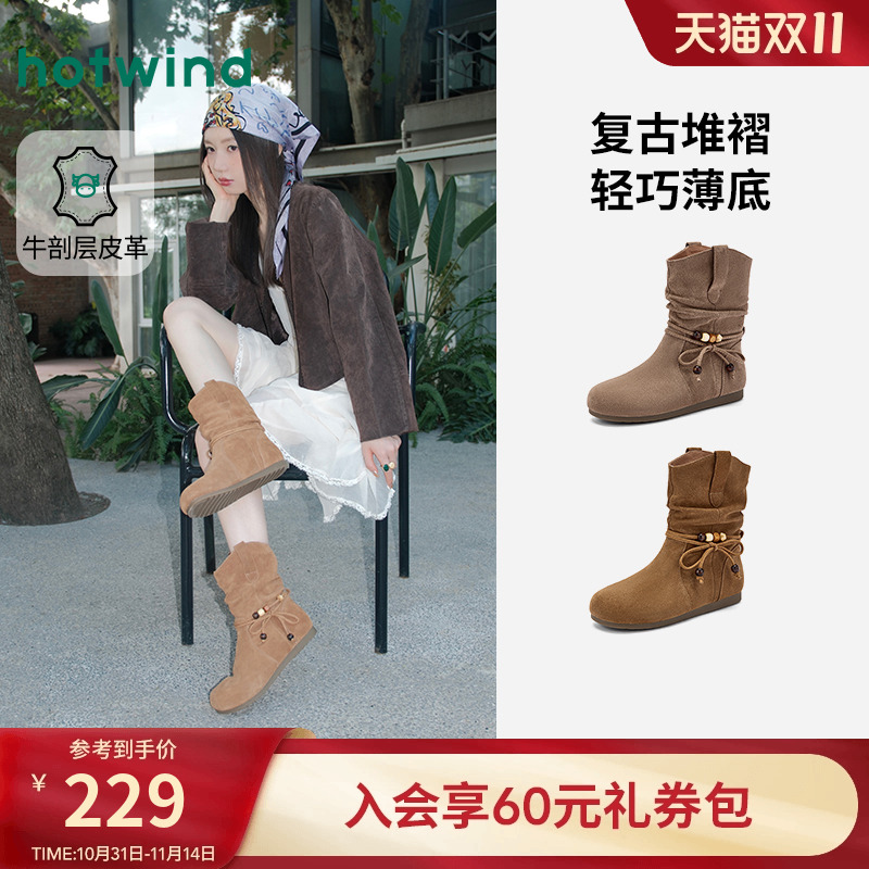 热风棕色堆堆靴2025年冬季新款爆款西部靴勃肯短靴巴恩风中筒靴子