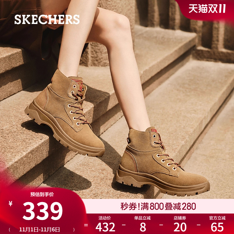 斯凯奇马丁靴废土风大黄靴秋冬女鞋厚底户外旅游靴中筒靴切尔西靴