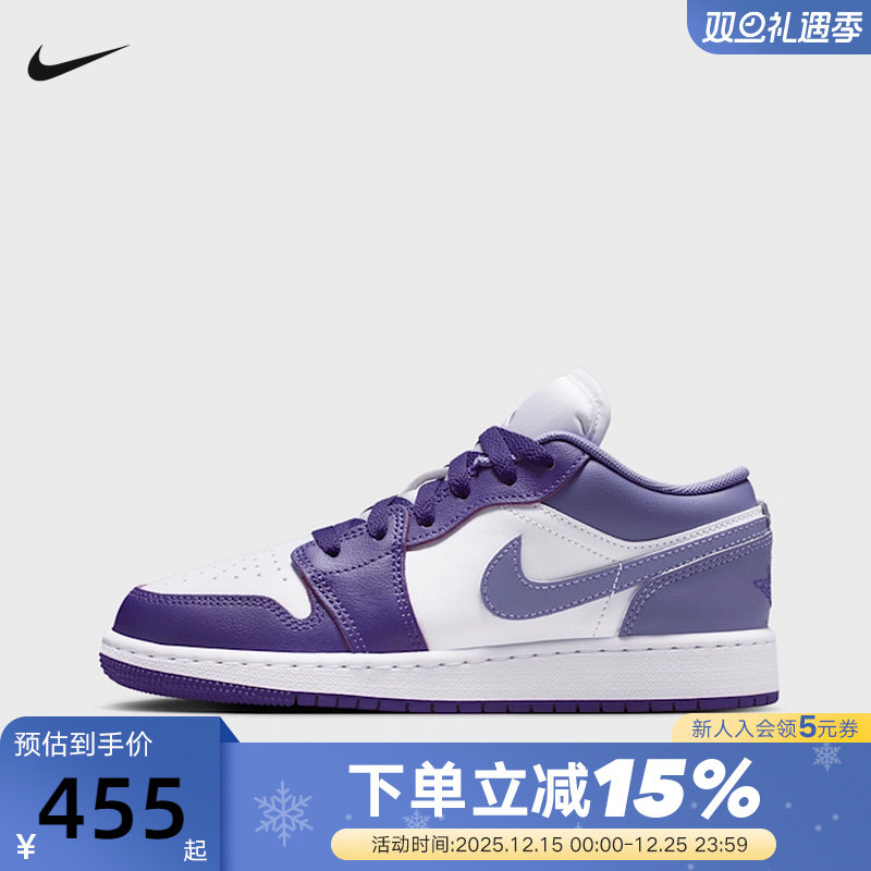 Nike耐克AJ1女鞋Air Jordan 1白紫色复古板鞋童篮球鞋553560-551