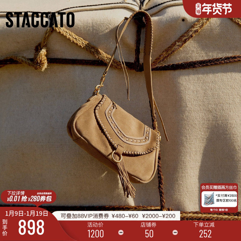 思加图新款游牧包斜挎包复古流苏包单肩包时尚背提包X8340DX5