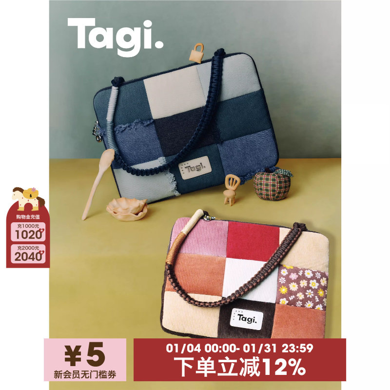 Tagi.《苹苹安安》珍珠牛仔流苏旅行护照夹收纳包礼物证件卡包