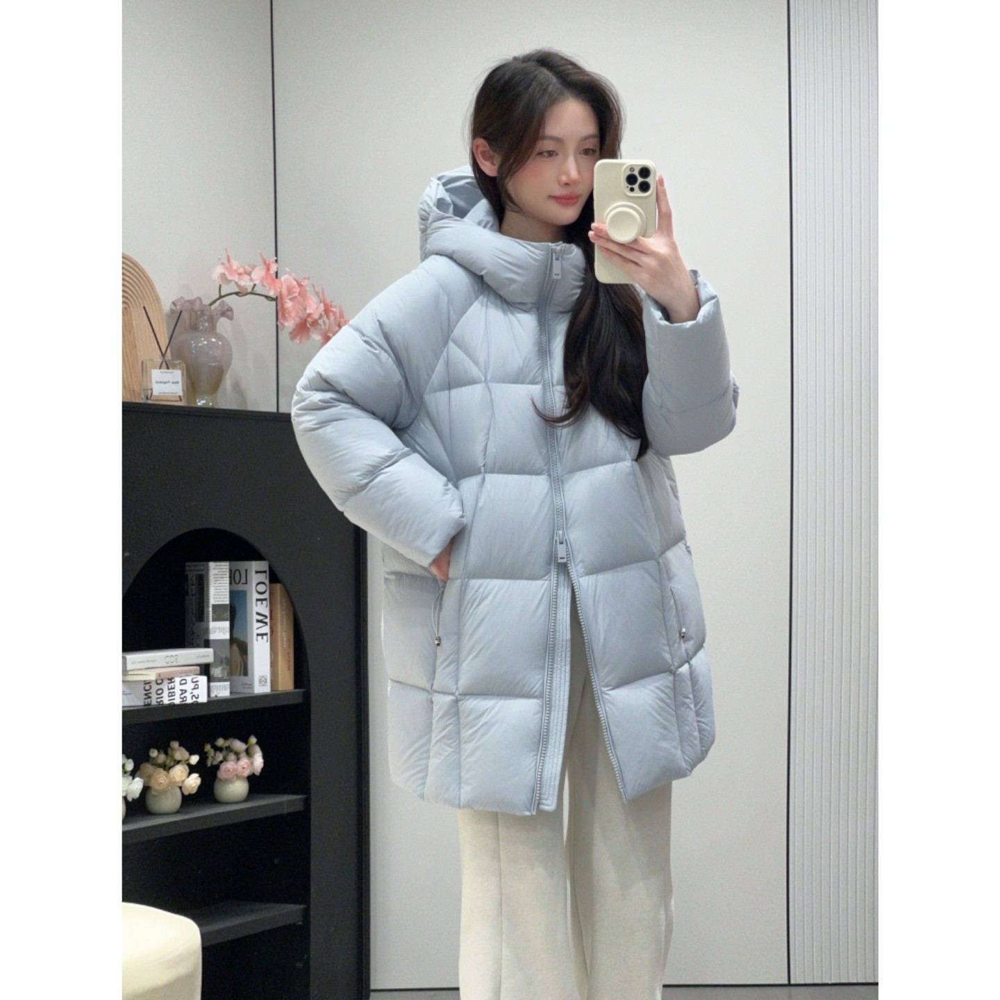 播商场同款连帽领鹅绒羽绒服女24冬休闲宽松中长款外套BDR4RD3551
