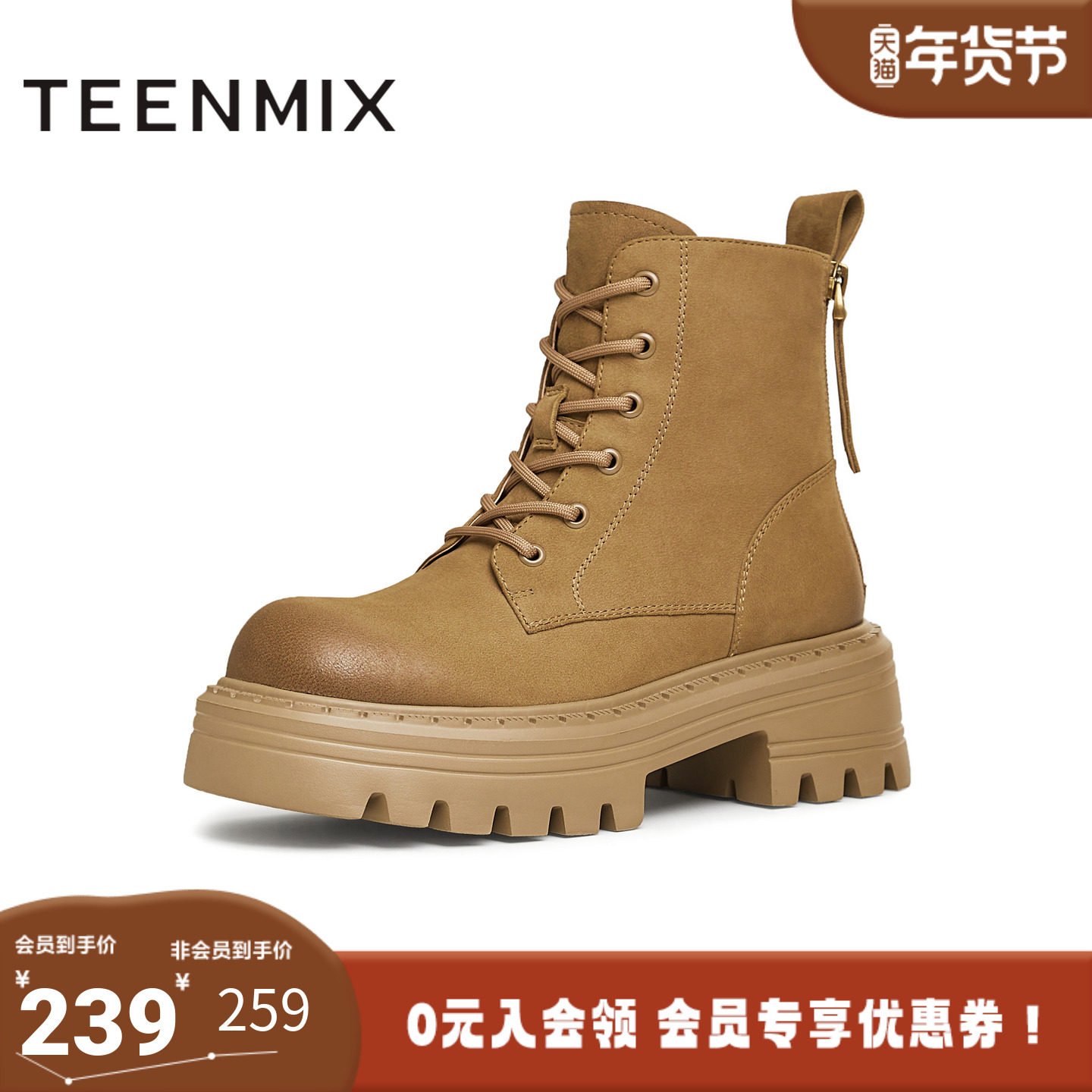 天美意冬新款商场同款女休闲系带户外后拉链马丁靴CJH40DD4