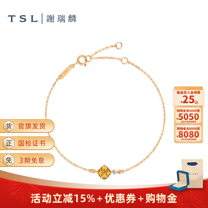 TSL谢瑞麟TGOL几何魅力系列18K金复古黄晶手链商场同款女士63639