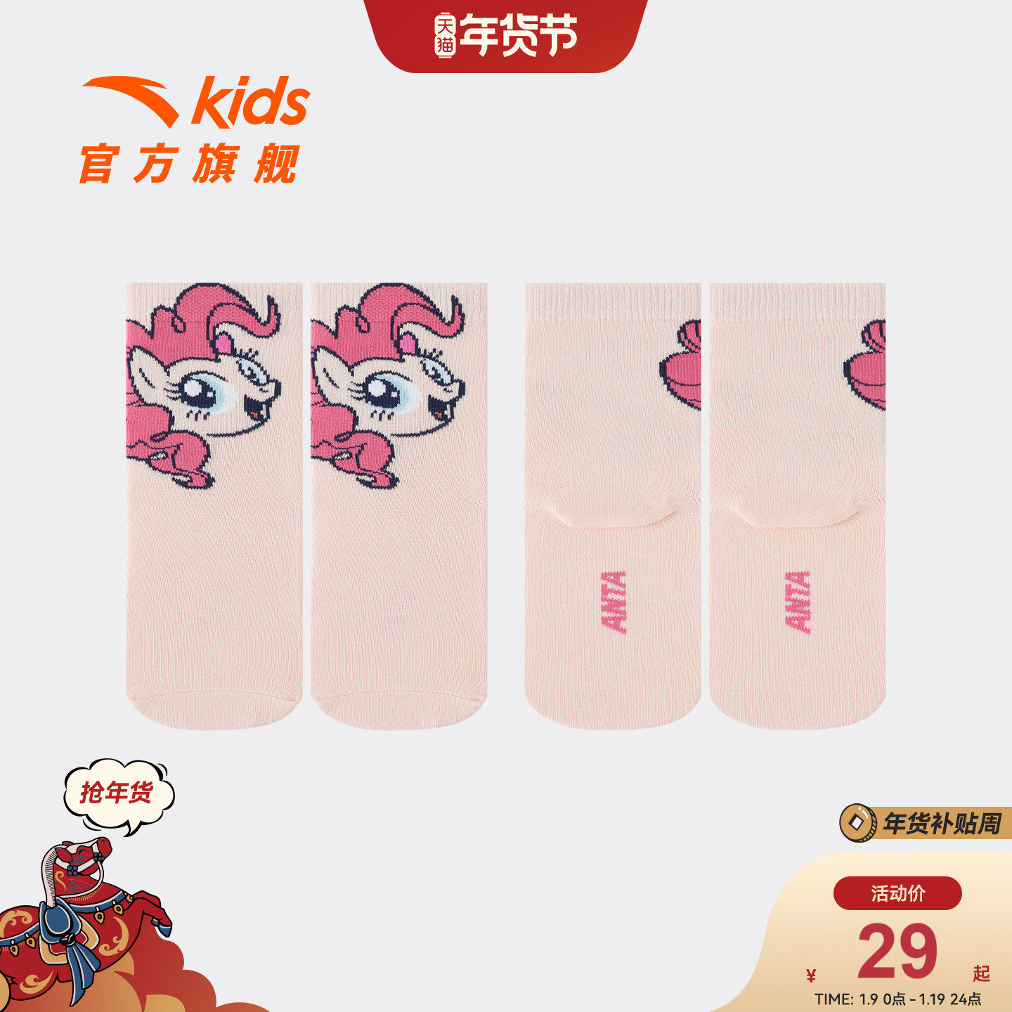 小马宝莉商场同款女童袜子安踏儿童中筒袜2026款印花时尚抗菌袜子