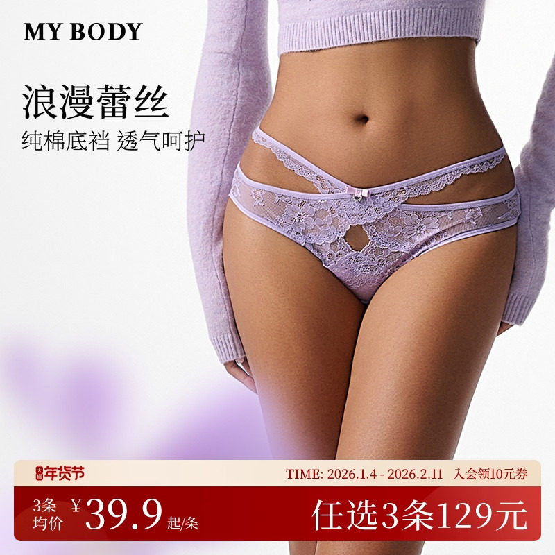 3件129|MYBODY商场同款女士内裤纯棉底档性感勾人蕾丝禁欲系短裤