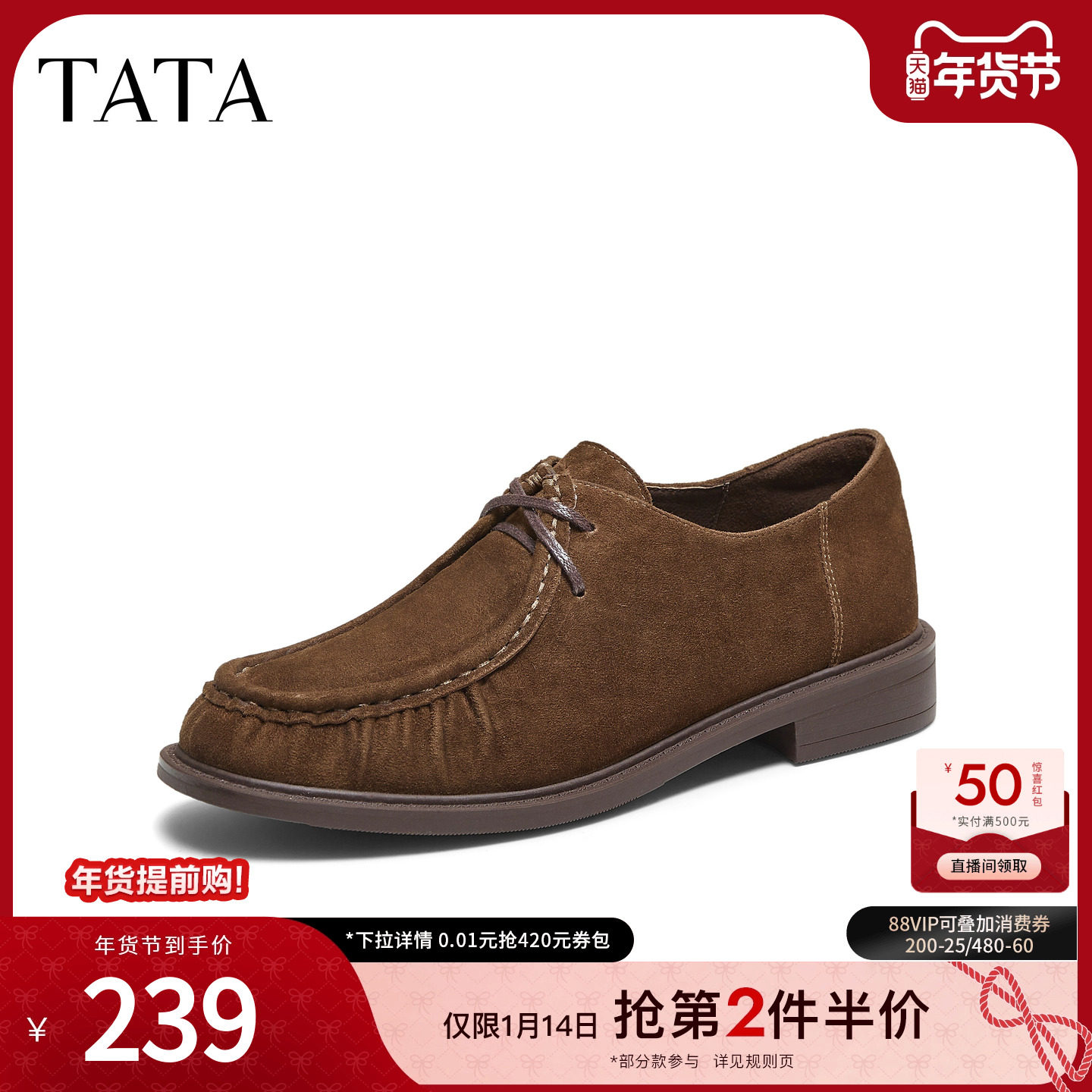 TATA他她女鞋2025年冬商场同款女百搭牛津鞋简约单鞋新款YVS01CM5