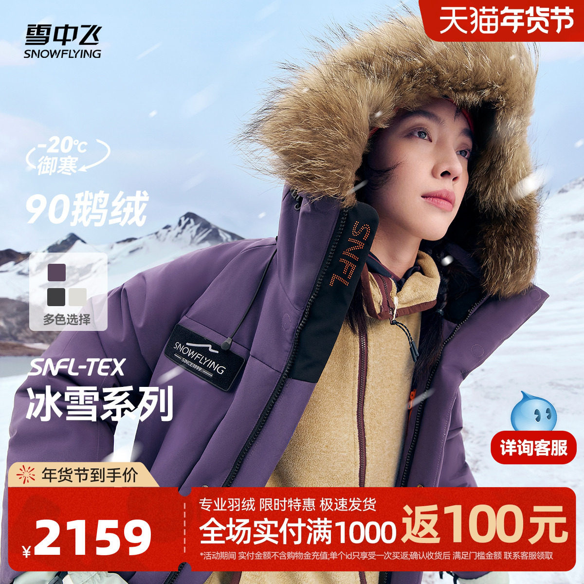 雪中飞冰雪系列2025冬新商场同款女士鹅绒羽绒服貉子毛时尚户外