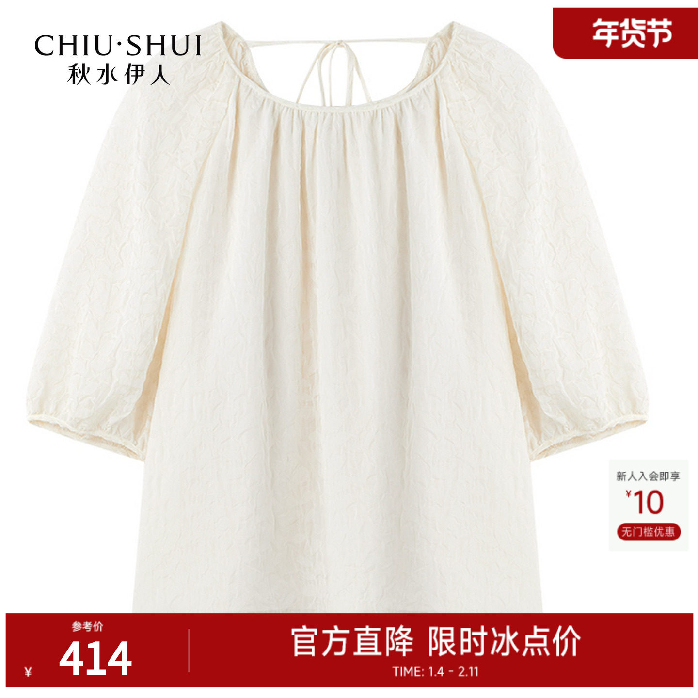 秋水伊人简约通勤上衣2025年夏季商场同款女时尚气质圆领设计衬衫