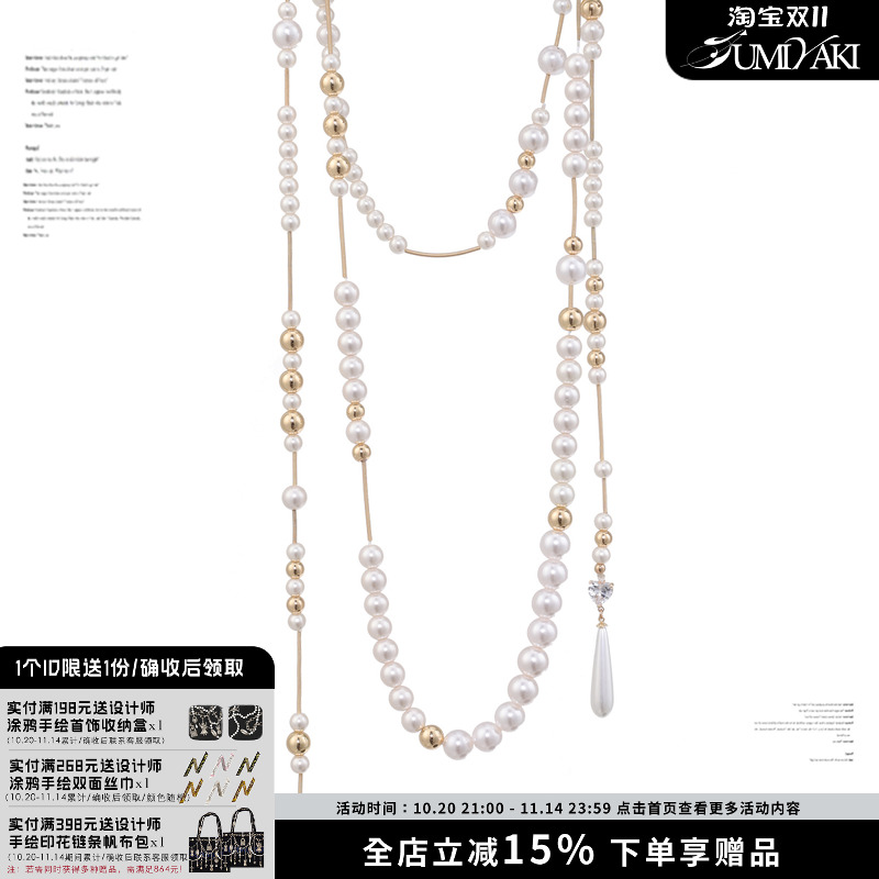 「满天星」纯银珍珠长项链法式女生胸链颈链锁骨链搭配毛衣链吊坠