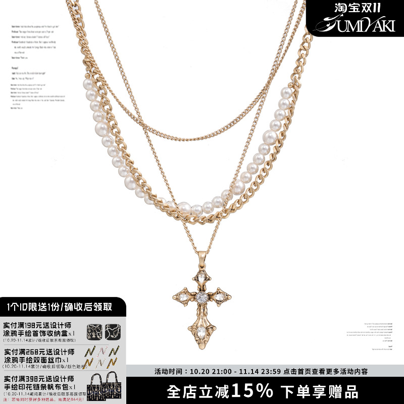 SUMIYAKI 美式巴洛克珍珠十字架项链高级感多层叠带毛衣链礼物