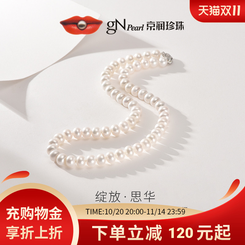 京润珍珠 诗真 925银淡水有核珍珠吊链9-12mm圆形白色项链送女友D