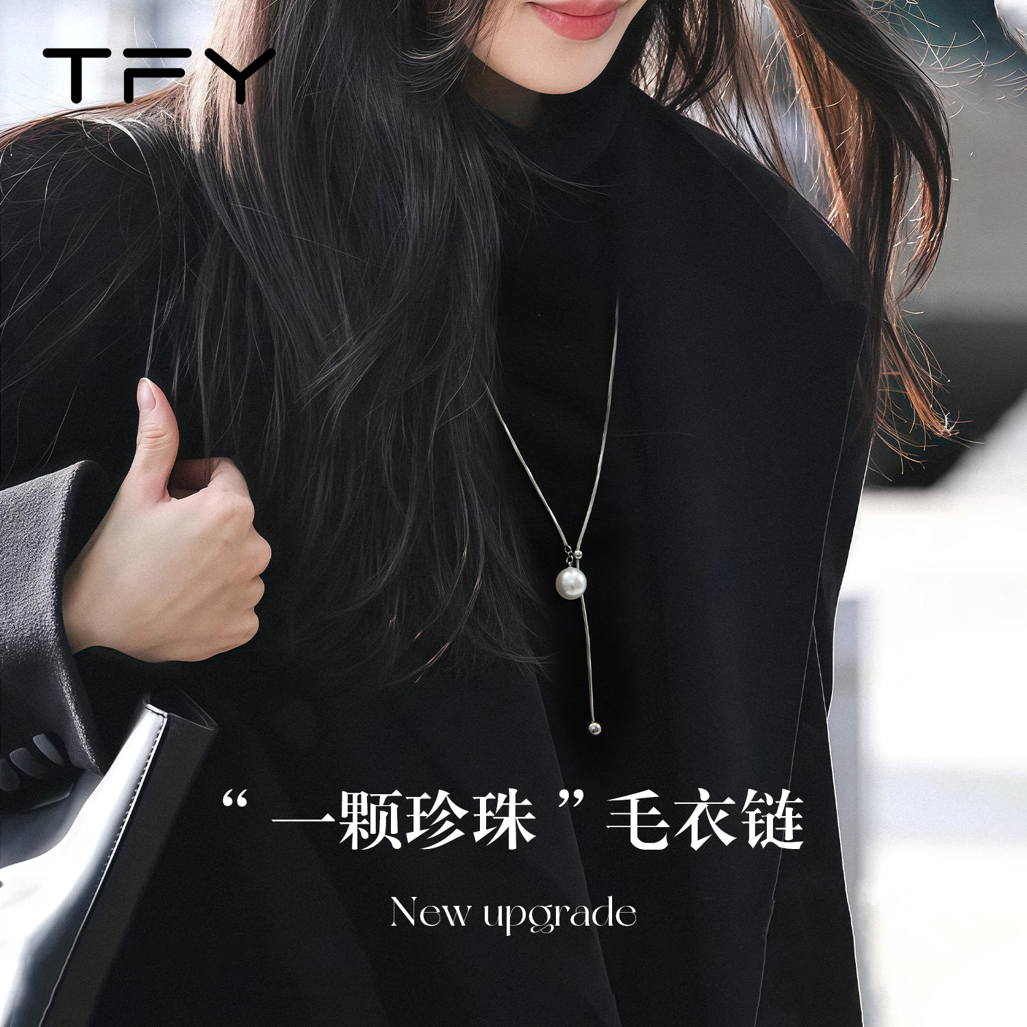 施家珍珠项链女款轻奢小众颈链秋冬毛衣链配饰2025新款爆款锁骨链