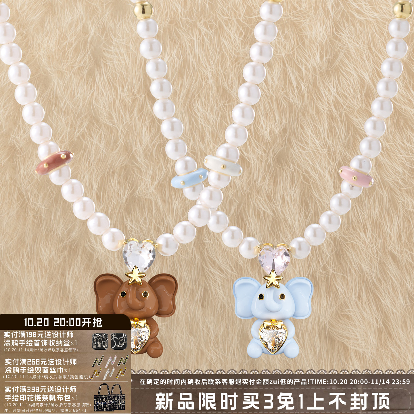SUMIYAKI 秋冬复古小福象珍珠项链招财纳象女转运珠颈链