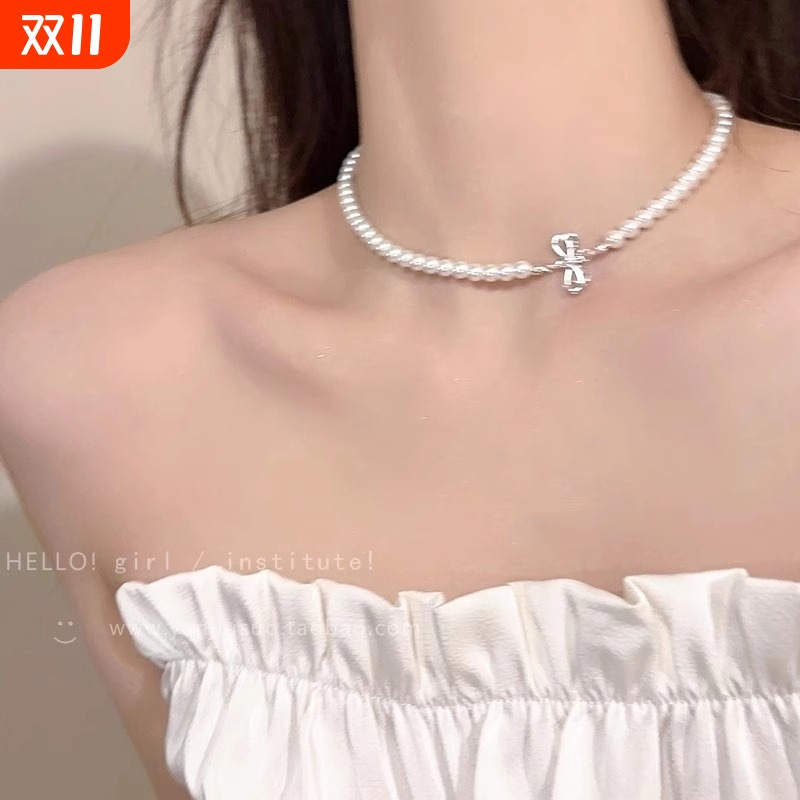 温柔蝴蝶珍珠项链轻奢小众设计感高级锁骨链女网红气质脖颈链配饰