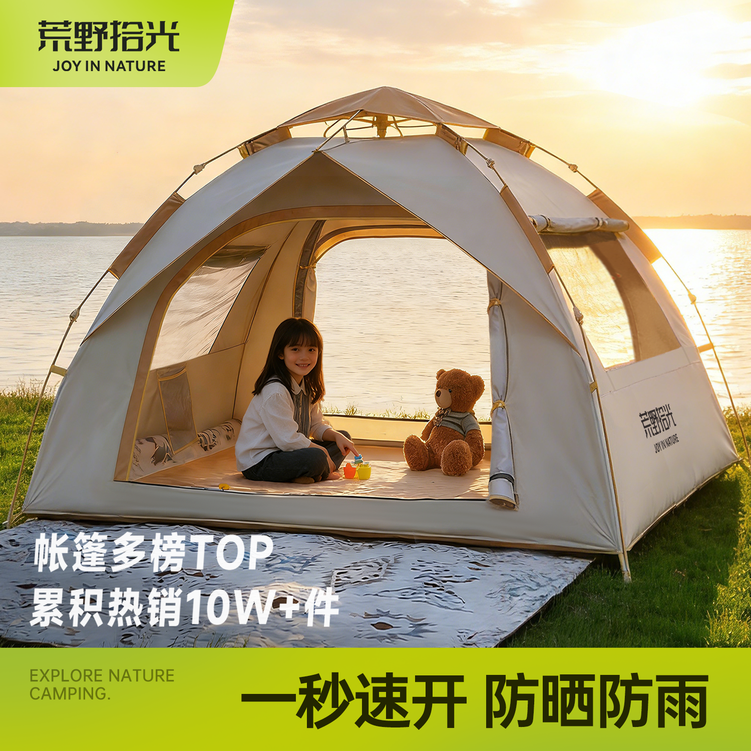 帐篷户外野营过夜折叠便携式加厚防雨露营装备全套全自动室内公园