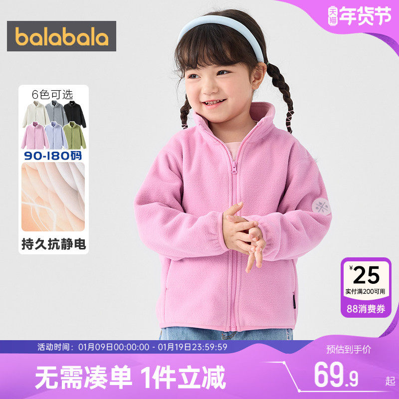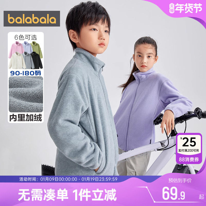 巴拉巴拉儿童摇粒绒外套女童抓绒衣内胆男童薄款内搭秋冬新款童装
