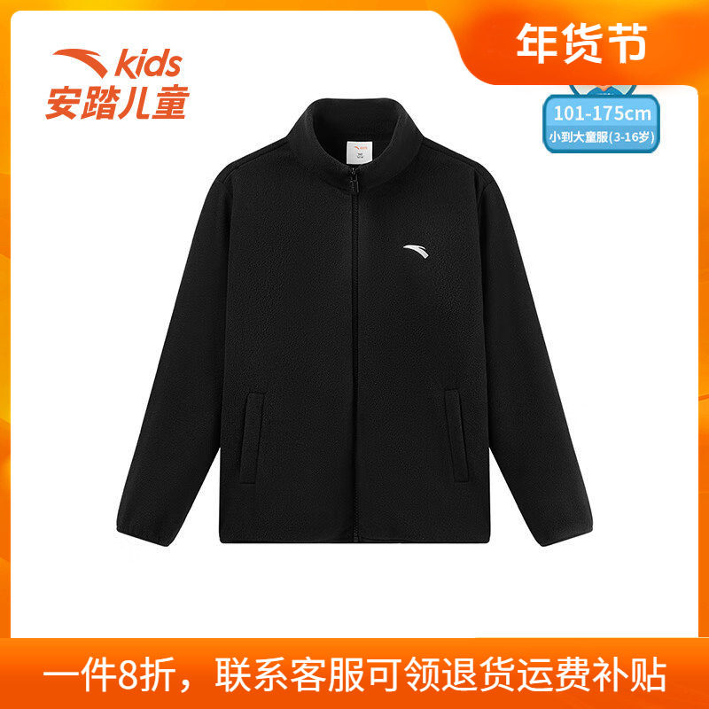 安踏儿童摇粒绒外套男童2025冬季新款抗静电针织立领运动上衣保暖