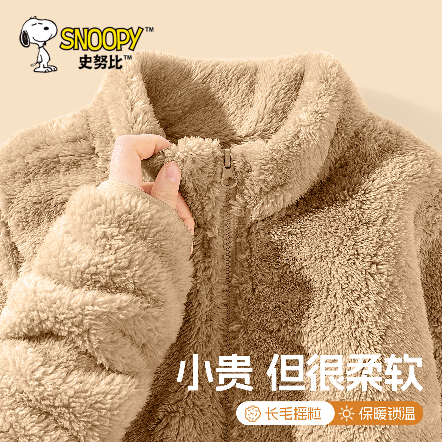 史努比童装儿童摇粒绒外套内胆男童内搭加绒冬装女童毛毛抓绒衣冬