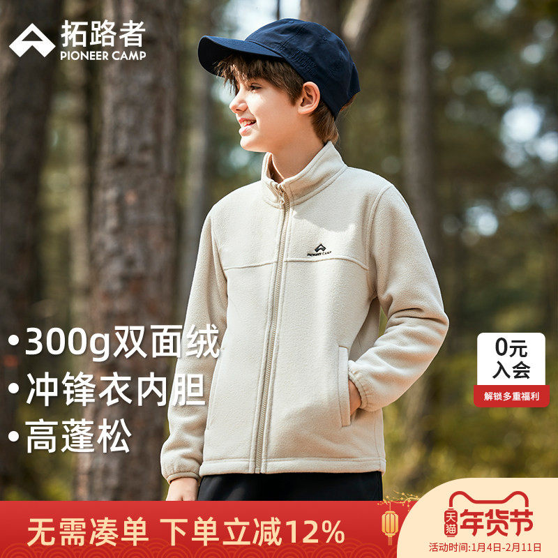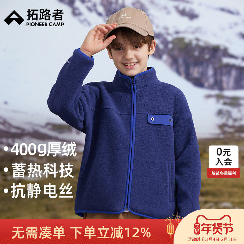 拓路者儿童摇粒绒外套男童抓绒衣中大童25年春秋加绒保暖衣服上衣