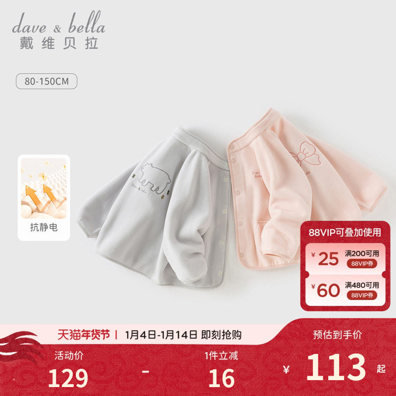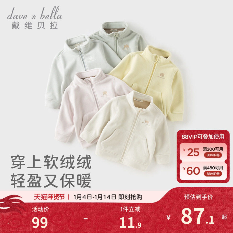 戴维贝拉儿童摇粒绒外套冬装新款男童女童抗静电内胆宝宝A类上衣