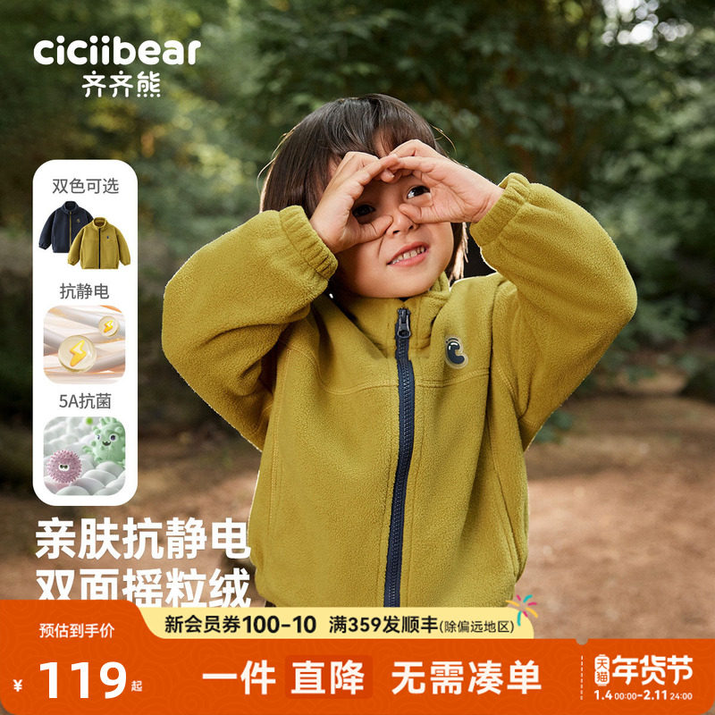 [羊羔毛]齐齐熊宝宝摇粒绒外套男童抓绒衣儿童秋冬款2025年款上衣