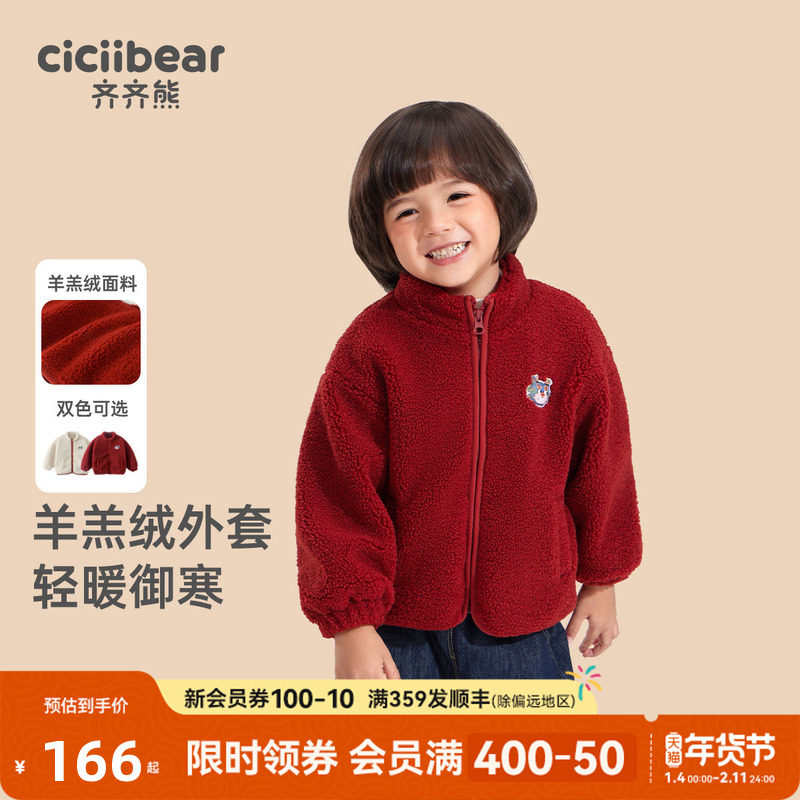 【新年羊羔绒】齐齐熊宝宝摇粒绒外套男童秋冬儿童拜年服红色上衣
