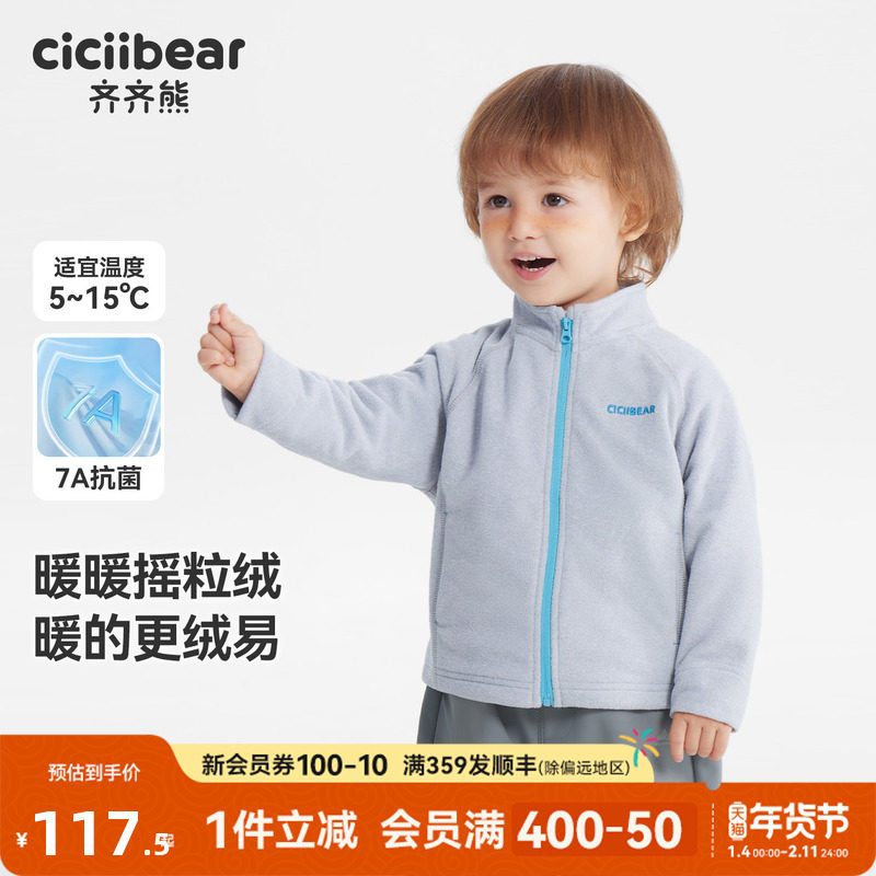 【抗静电】齐齐熊儿童摇粒绒外套男童春秋款宝宝外出内搭保暖上衣
